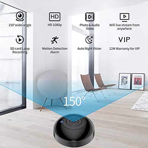 - 📷【Excellent Performance】—①150° wide angle ②HD 1080P ③Support up to 64GB SD card (not included) ④1.5 hours built-in battery life ⑤Automatic night vision: 6 infrared IR lights (non-luminance) ⑥Motion Activated Alarm ⑦Wifi live stream from anywhere ⑧ Free APP for Android /iOS.