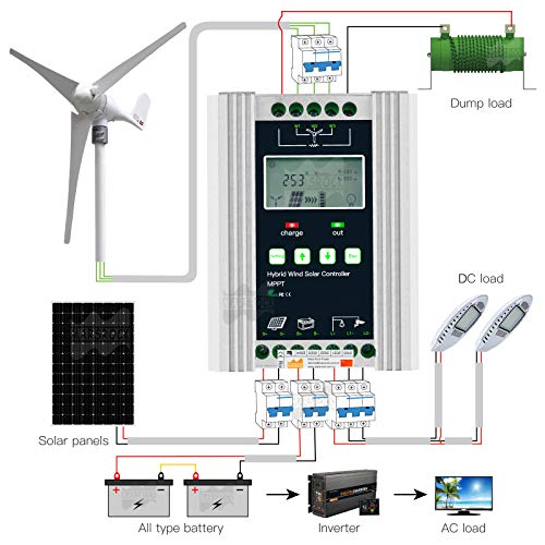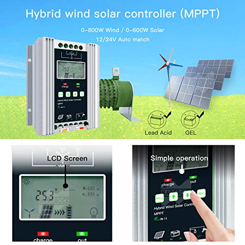 Specification: Marsrock 1400W 12V/24V Auto MPPT Wind Solar Hybrid Charge Controller Support Gel and Lead-Acid Battery for Home Wind Turbine Generator and Solar…