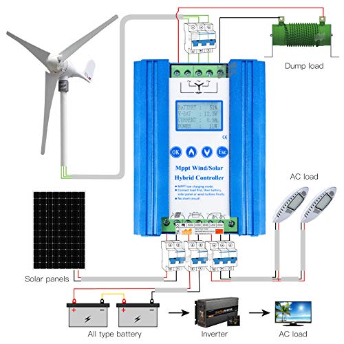 Specification: Marsrock Lithium Battery Wind Solar Hybrid Charge Controller with Wind Generator MPPT Boost Charging Function, with Dump Load Device and 50cm…