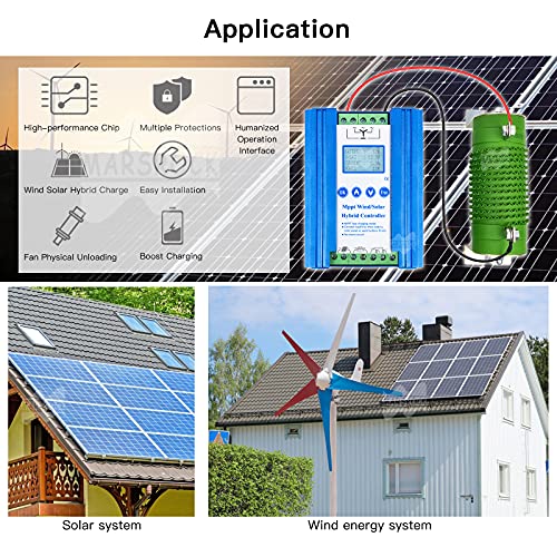 Marsrock Lithium Battery Wind Solar Hybrid Charge Controller with Wind Generator MPPT Boost Charging Function, with Dump Load Device and 50cm…