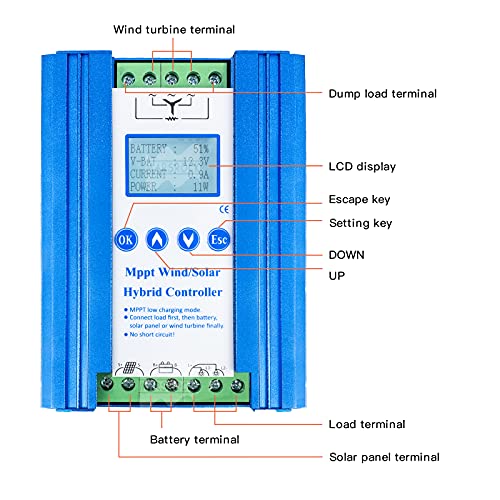 This Hybrid Wind-Solar MPPT/58A is easy to use; it’s and upgrade to the original wind controller that came with the 0.5 KW wind generator. I like the digital display showing DC V, Amps and Watts of Wind/Solar. The 800 watt dump load is superior and it comes with wires. I’m glad i got two hybrid MPPT from Amazon and two 0.5 KW wind generator again from Amazon at a great price. highly recommend both.