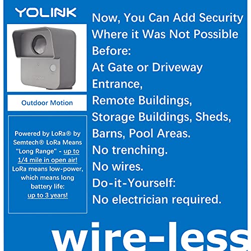 Specification: YoLink Smart Outdoor Motion Detector, Trespassing Alarm, Driveway Alert, 1/4 Mile Range LoRa-Powered Wireless Motion Sensor, App for Remote…